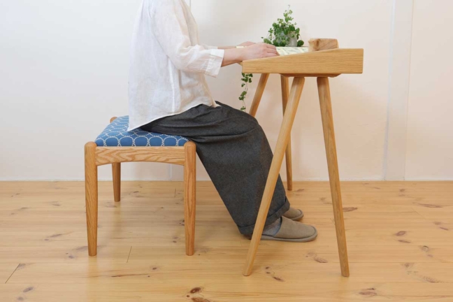 ミナペルホネン生地のスツール|dopタンバリンのブルーで彩る限定受注会
